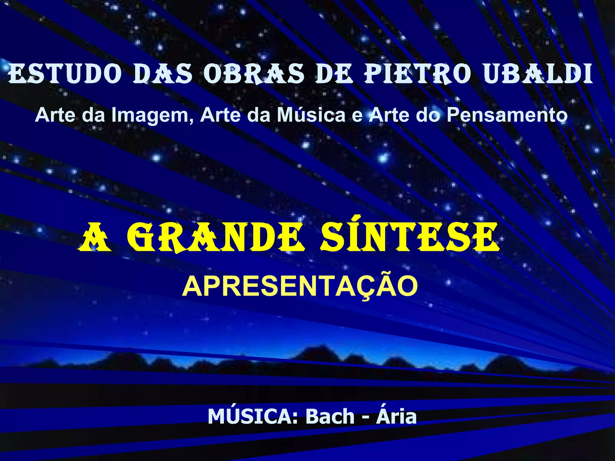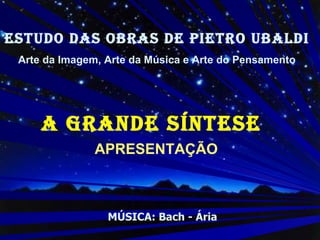 Este documento apresenta o livro "A GRANDE SÍNTESE" de Pietro Ubaldi, descrito como uma obra monumental que sintetiza o conhecimento em diversas áreas e fornece respostas a perguntas fundamentais sobre a humanidade. Vários líderes de pensamento como Monteiro Lobato, Albert Einstein e Francisco Cândido Xavier elogiam a abrangência e profundidade da obra.