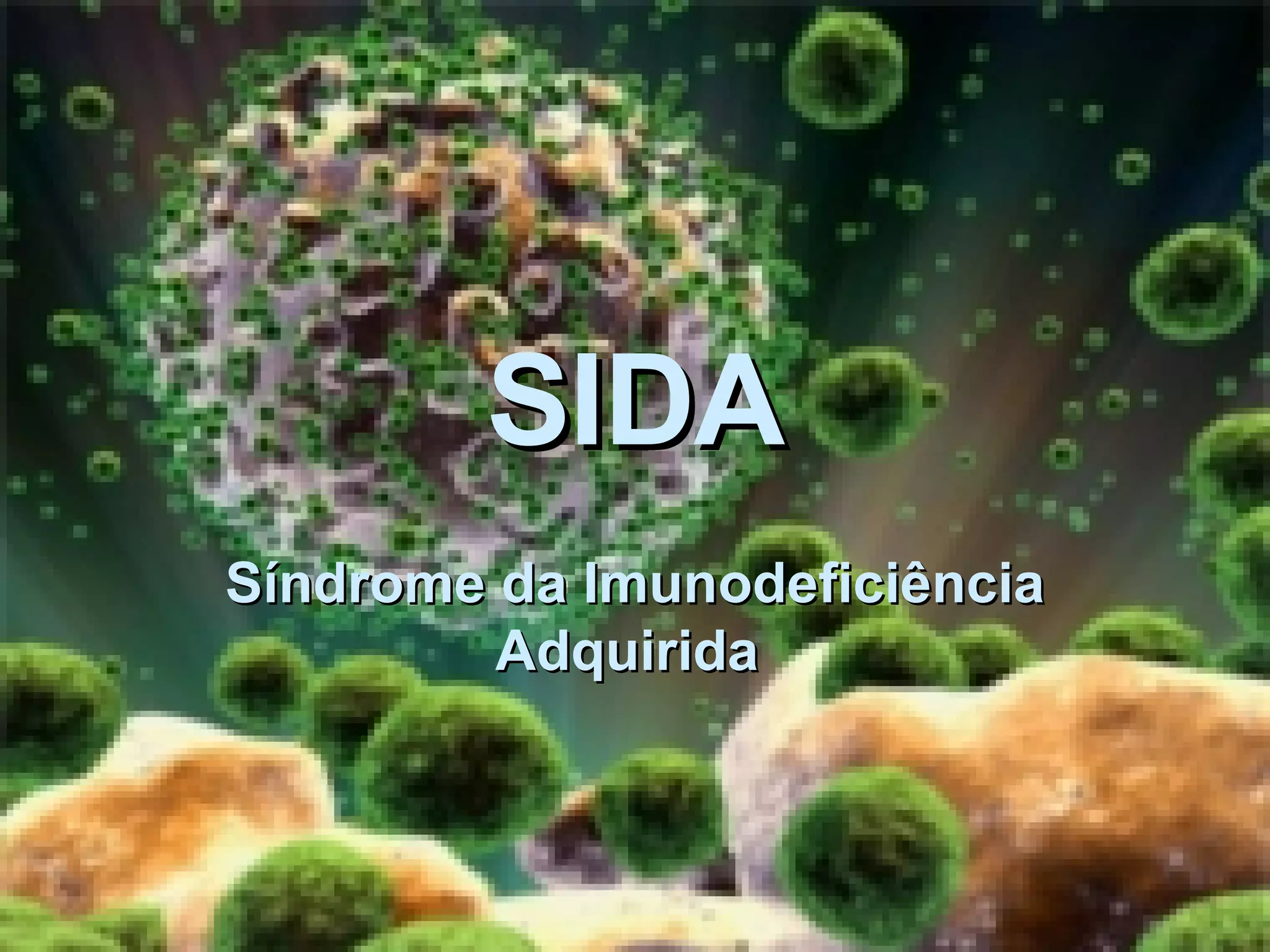 Este documento fornece um resumo abrangente sobre a Síndrome da Imunodeficiência Adquirida (SIDA), incluindo sua causa (o vírus HIV), sintomas, transmissão, tratamento e prevenção. Explica como o HIV destrói o sistema imunológico, levando a doenças oportunistas, e descreve o ciclo de vida do vírus dentro das células. Também discute os tipos de medicamentos antirretrovirais usados para tratar a infecção e seus objetivos de redu
