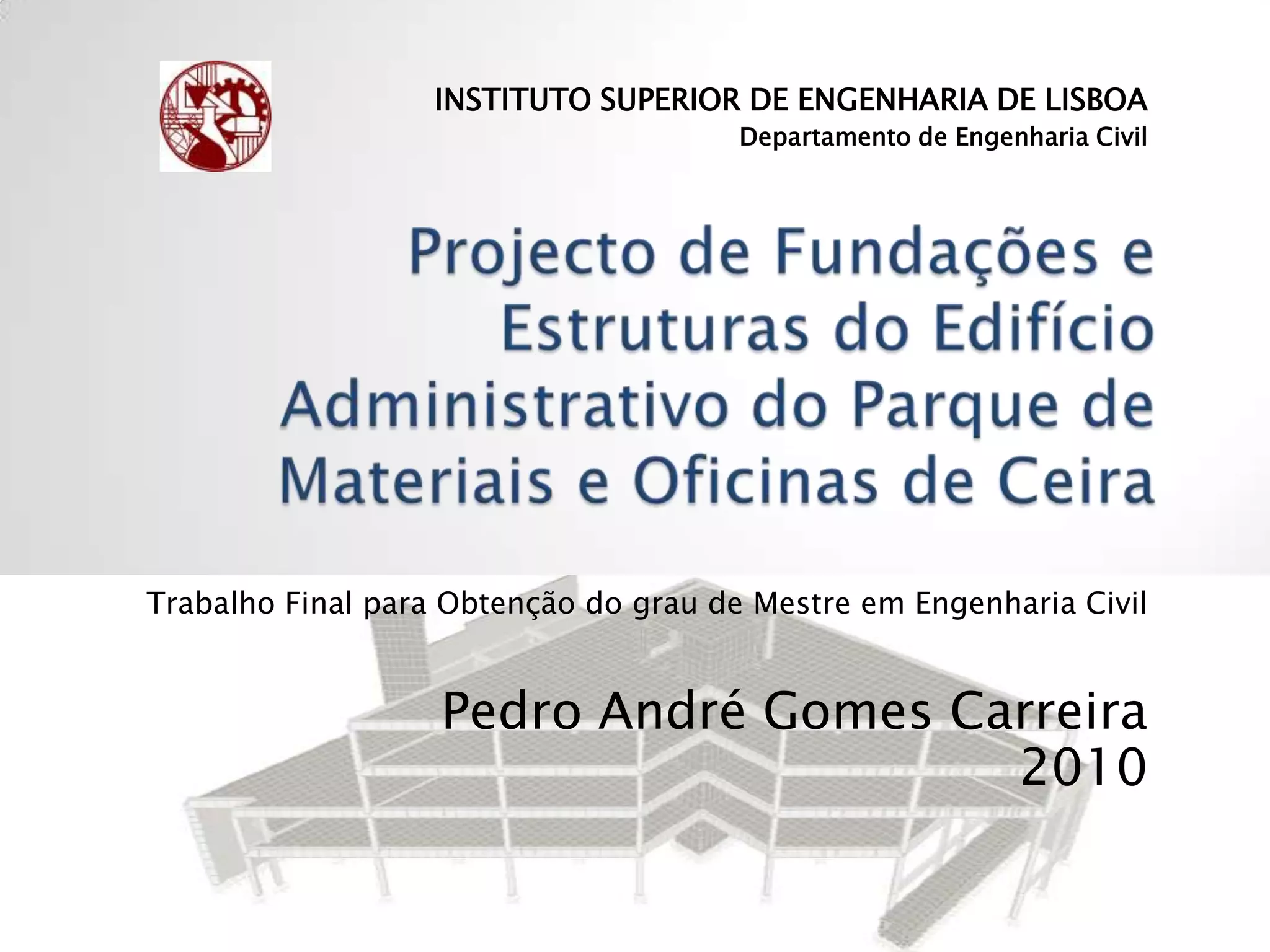 O documento descreve o projeto estrutural de um edifício administrativo para apoio à rede de transportes do Metro do Mondego em Coimbra. O projeto inclui a modelação estrutural, análise de ações, dimensionamento de elementos estruturais e memórias descritivas. O edifício terá quatro pisos em betão armado com pilares, vigas e lajes dimensionados de acordo com normas portuguesas.