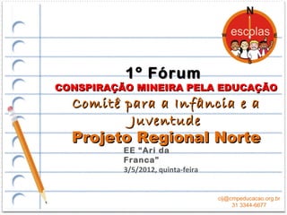 O documento resume as informações sobre a região norte de Belo Horizonte. Apresenta dados demográficos e sobre unidades escolares da região, programas educacionais implementados, desafios enfrentados e próximos passos planejados para fóruns sobre educação.