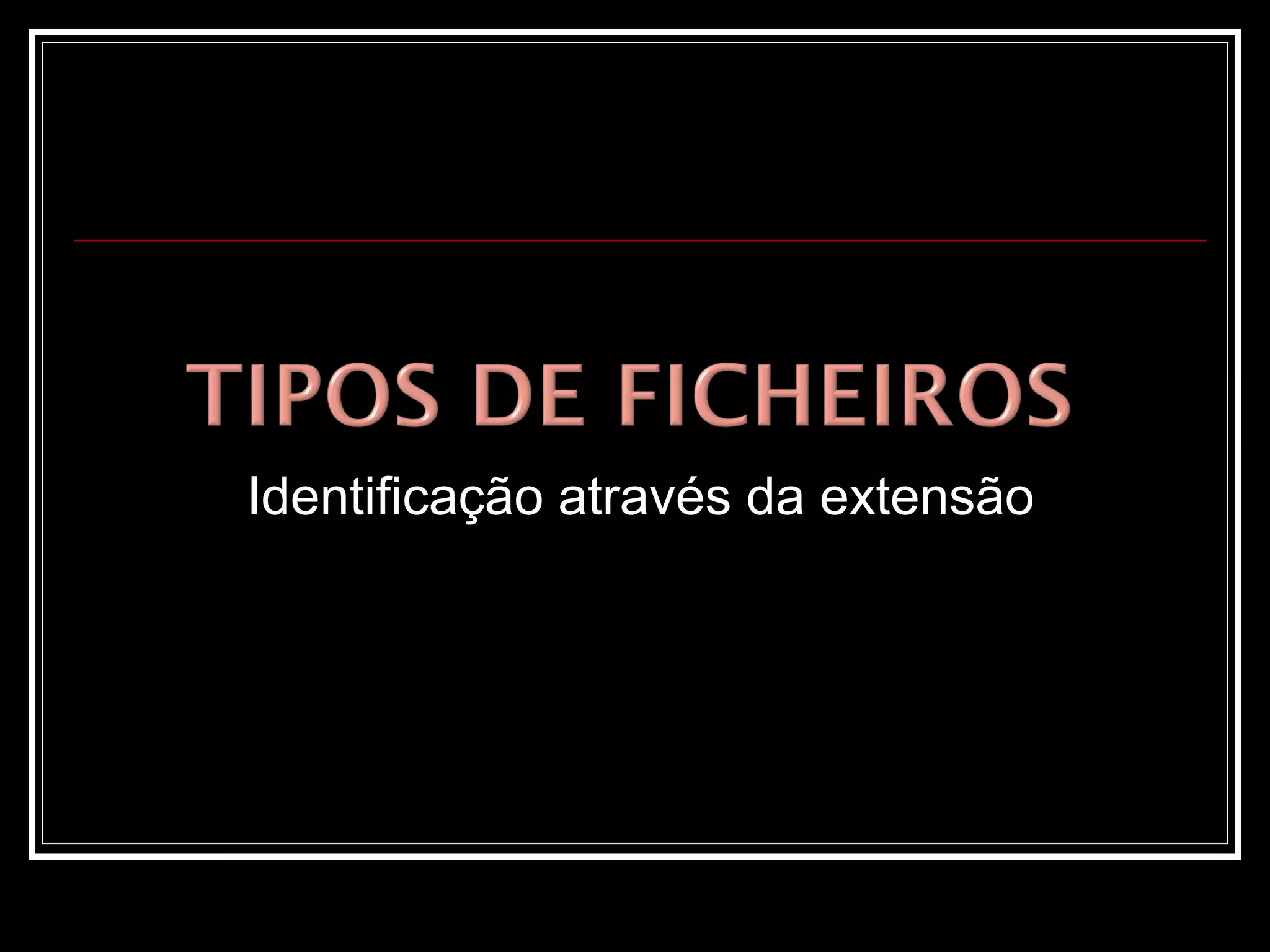 O documento descreve os principais tipos de extensões de ficheiros, distinguindo entre ficheiros ASCII e binários. Detalha as extensões mais comuns para documentos, imagens, música, vídeo e outros tipos de ficheiros, explicando o formato e software necessário para abrir cada tipo de ficheiro.