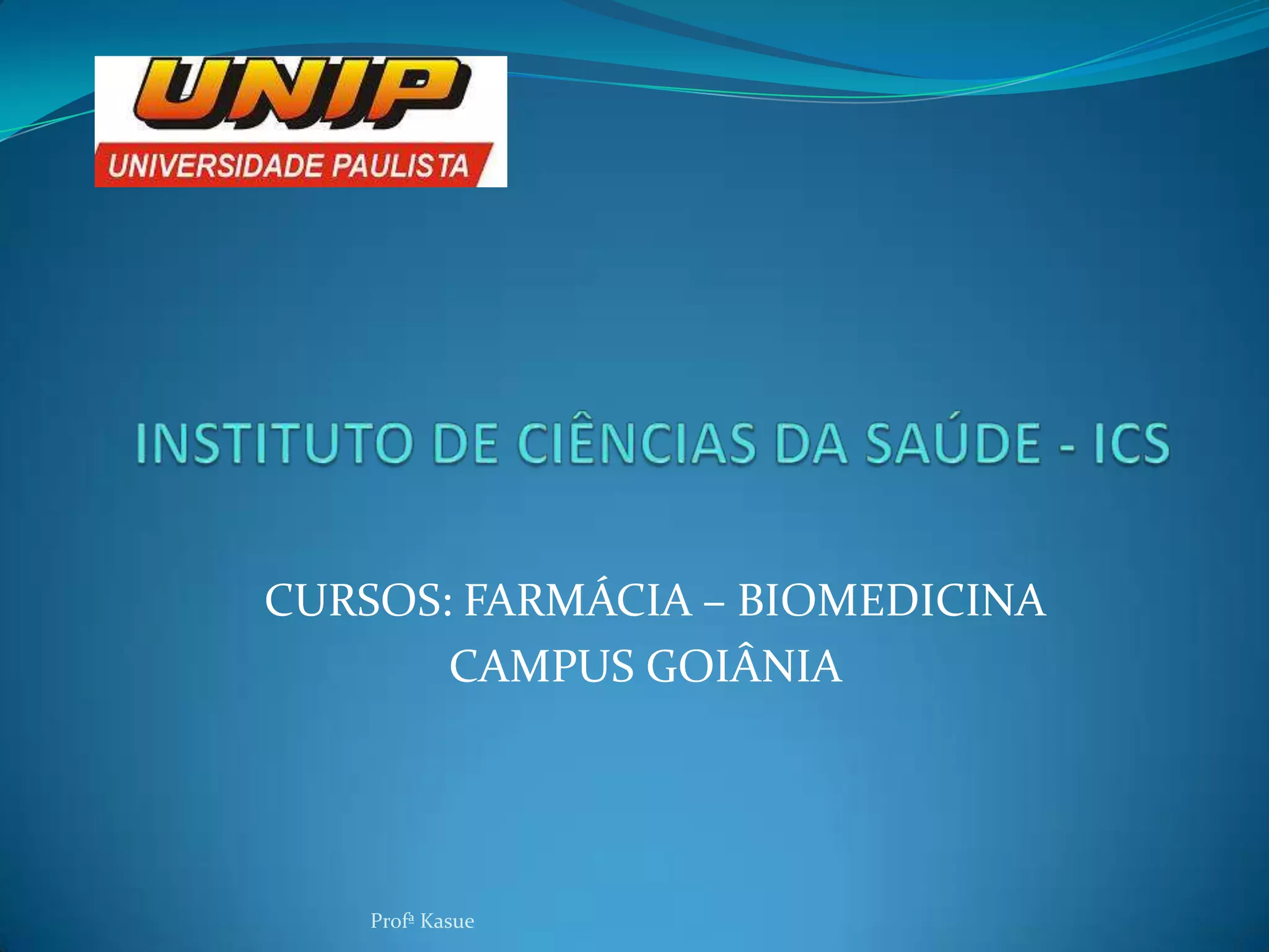 Este documento apresenta o conteúdo programático de um curso de bioquímica ministrado pela Profa Kasue, incluindo visão geral do metabolismo de biomoléculas como proteínas, enzimas, carboidratos e lipídeos. O sistema de avaliação consiste em relatórios de aulas práticas e uma avaliação teórica complementar.
