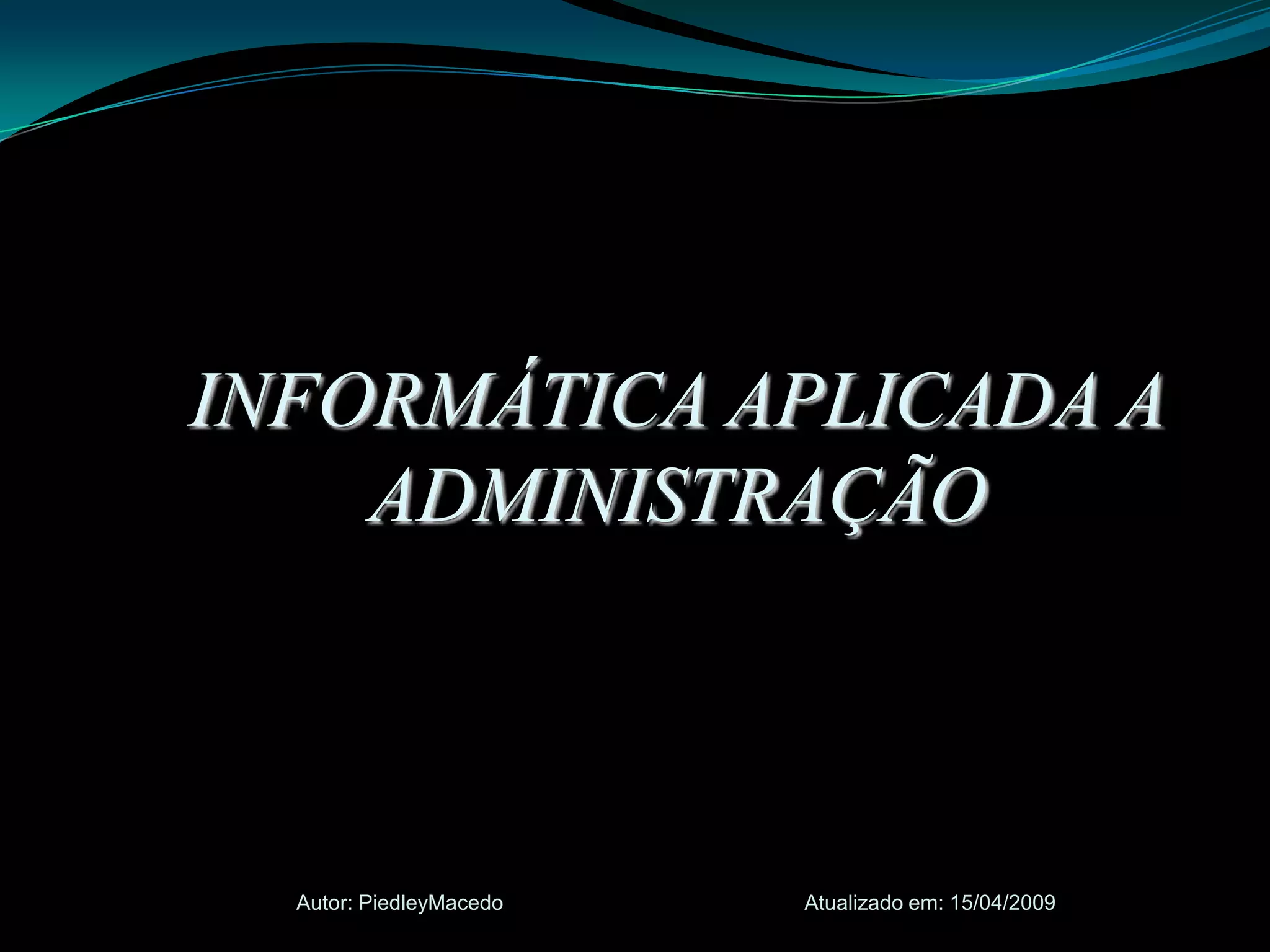 Este documento apresenta os detalhes de um curso sobre Informática Aplicada à Administração incluindo informações sobre o professor, alunos, programação, metodologia, avaliações e recursos.