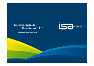 Este documento fornece informações sobre os resultados financeiros da CTEEP no primeiro trimestre de 2013, incluindo receita, despesas, lucro líquido e desempenho no mercado de capitais. Apresenta também detalhes sobre a expansão, perfil da dívida e projeções da companhia.