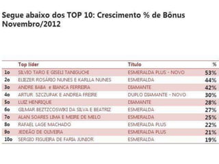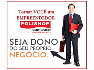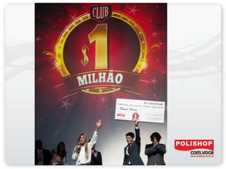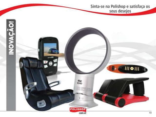 O documento apresenta uma proposta de parceria para a criação de lojas virtuais que operam no crescente mercado de R$ 18 bilhões no Brasil, destacando a Polishop como uma empresa inovadora com mais de 1.000 produtos. O modelo de negócios oferece incentivos como pontos, prêmios e margens de participação, além de um suporte abrangente para empreendedores. A proposta inclui a expansão de uma rede de lojas, com benefícios e ganhos em função do faturamento e da formação de novas parcerias.
