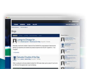 Um blog é uma página da web com atualizações chamadas posts organizadas cronologicamente como um diário, que reflete a atividade pessoal do autor na internet e permite compartilhar links, notícias e outros conteúdos para construir interação social e comunicação.
