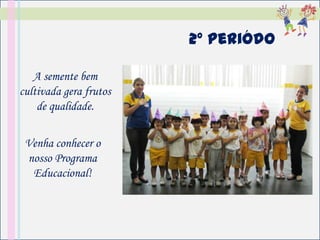 O documento descreve os programas educacionais e atividades oferecidas pelo Instituto Hilda Ferreira, incluindo aulas de língua portuguesa, matemática, ciências, educação cristã, música, esportes e artes. Também destaca os diferenciais da escola como atendimento psicológico, infraestrutura, eventos e datas comemorativas.