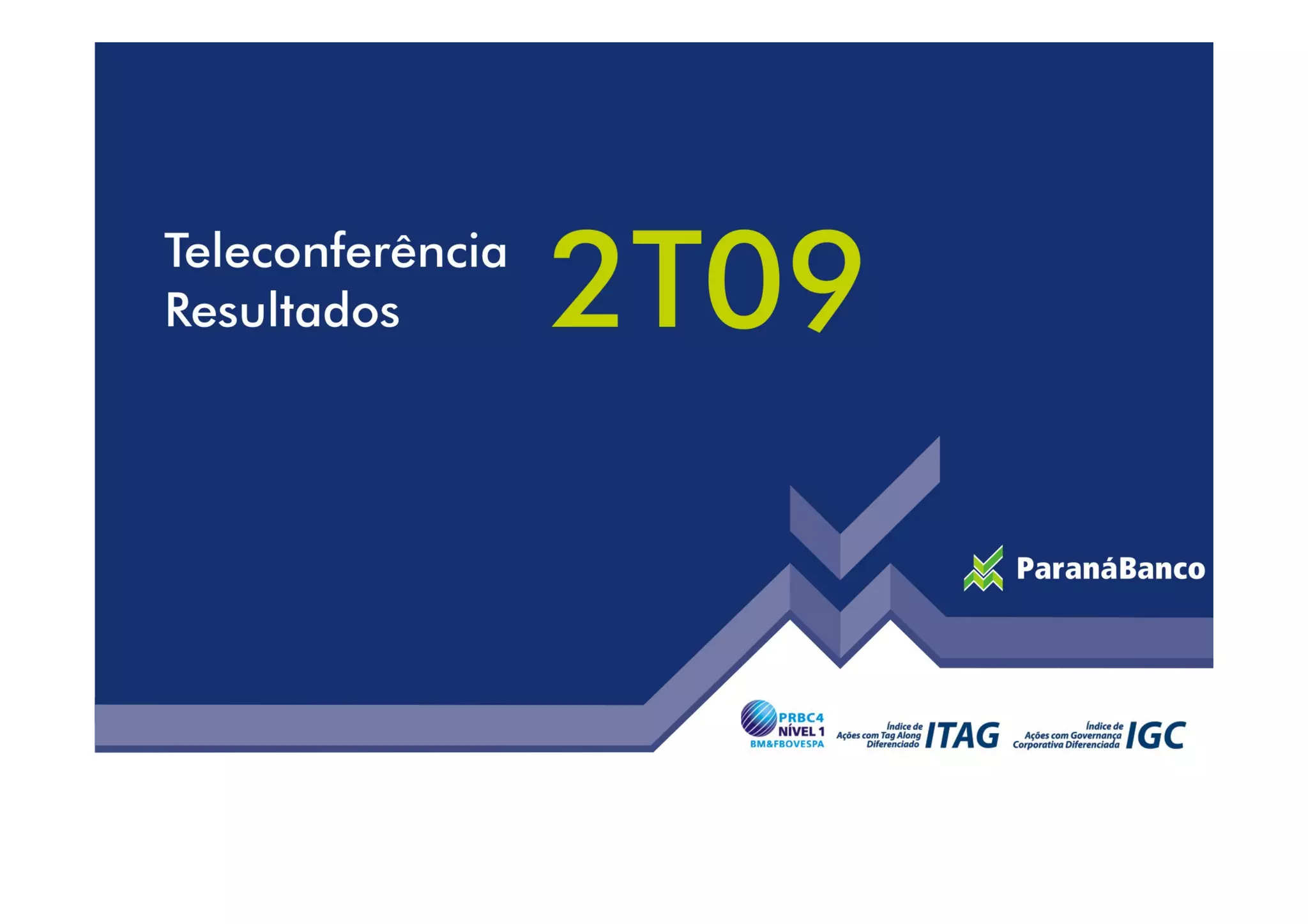 Este documento fornece um resumo financeiro consolidado do Banco Paraná e suas subsidiárias para o 2T09. Destaca o crescimento do lucro líquido de 33,8 milhões no trimestre, impulsionado pela retomada do crédito e redução de despesas. A carteira de crédito cresceu 4,7% e a margem financeira aumentou para 15,4%. As operações de seguros representaram 32,4% do lucro líquido consolidado.