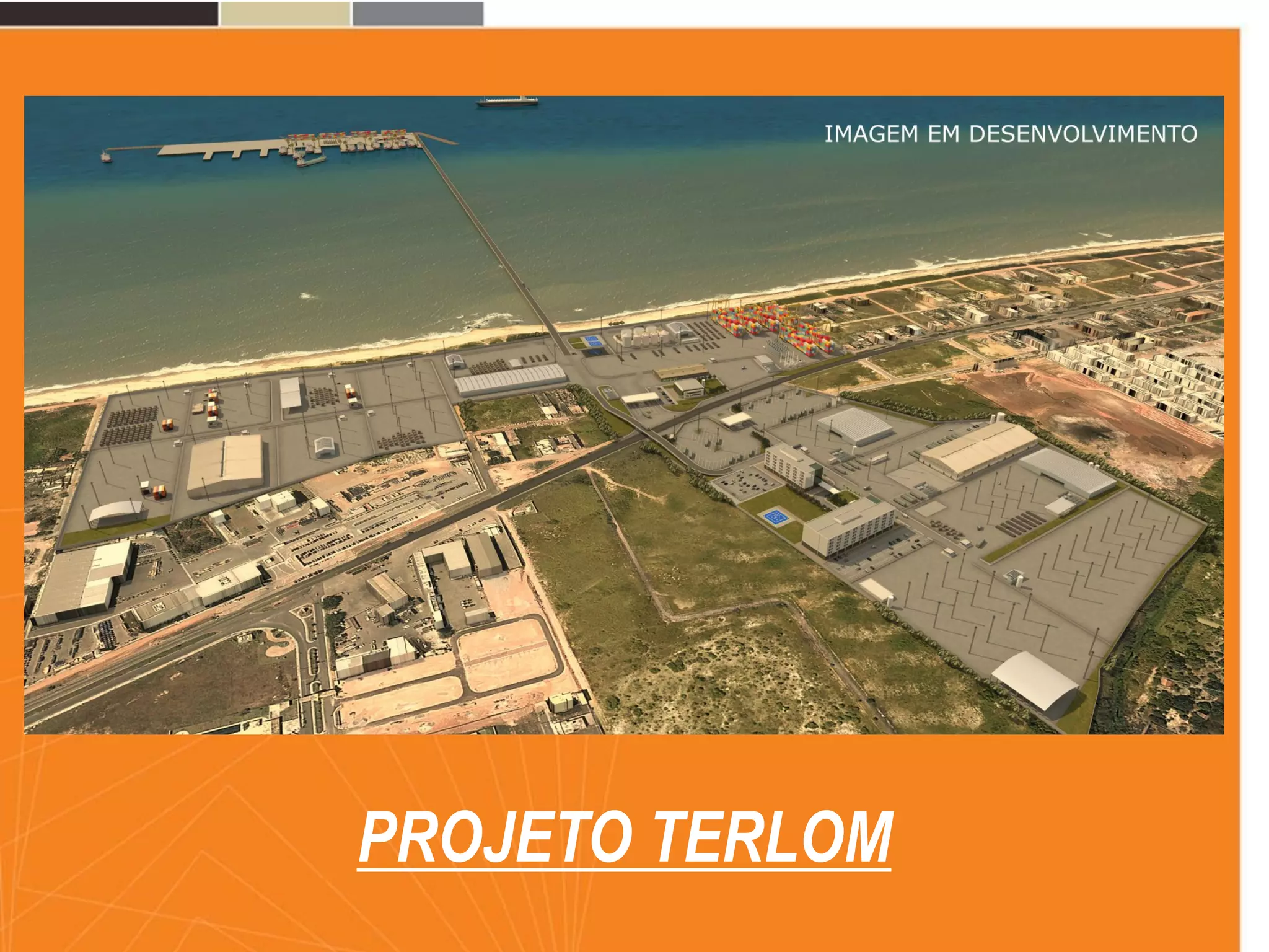 O projeto Terlom consiste na construção de um terminal portuário e logístico em Macaé, Rio de Janeiro, com unidades de negócios como porto, centro comercial e armazéns. O terminal visa atender as demandas da indústria de petróleo offshore na Bacia de Campos e norte da Bacia de Santos, aproveitando a localização de Macaé como principal base dessas atividades. O projeto inclui detalhes sobre a localização, acessos, características do porto e layout proposto.