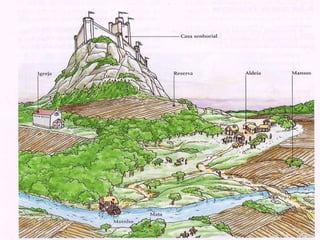 2) O senhorio era dividido em reservas senhoriais, mansos servis e terras comunais.