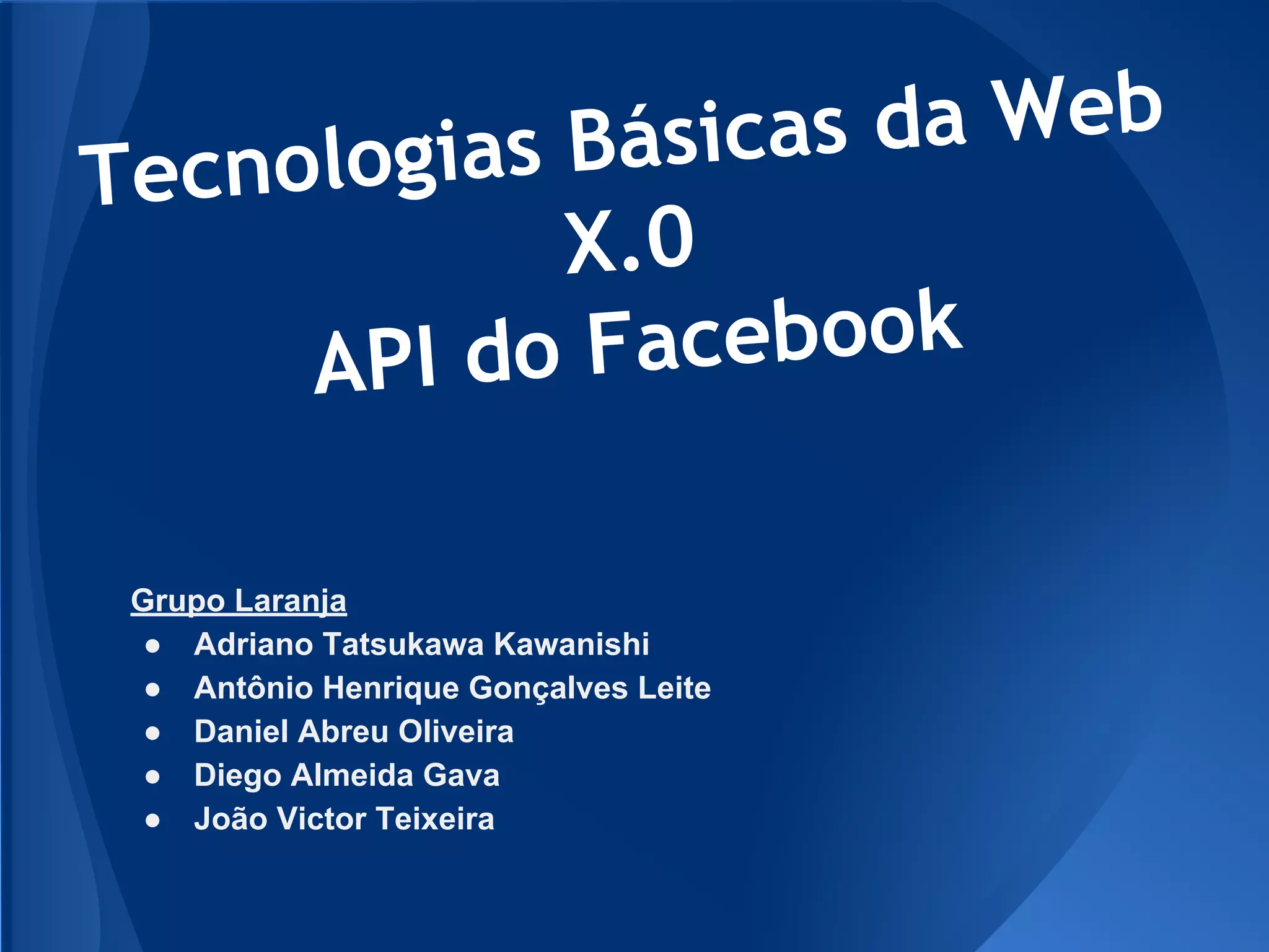 O documento discute a API do Facebook, explicando o que é uma API, como empresas usam APIs para permitir que outros desenvolvedores criem aplicativos integrados, e vários exemplos de como empresas usam com sucesso a API do Facebook em seus aplicativos e sites.