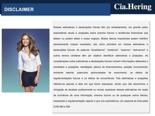 O documento apresenta os resultados financeiros da empresa no 3T12. A receita bruta cresceu 0,5% em relação ao ano anterior, enquanto o lucro líquido cresceu 20,3%. Apesar da expansão da rede de lojas, as vendas nas mesmas lojas cresceram apenas 1%. A maior atividade promocional levou à queda nas margens bruta e EBITDA.