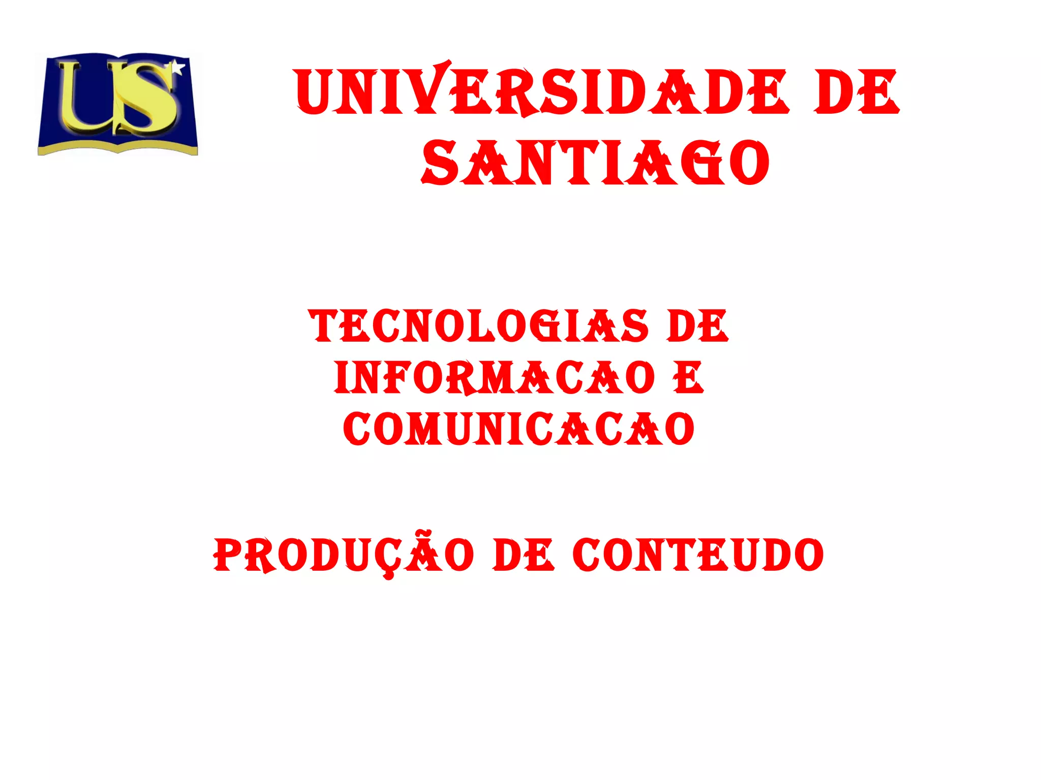 UNIVERSIDADE DE SANTIAGOTecnologias de informacao e comunicacao Produção de Conteudo