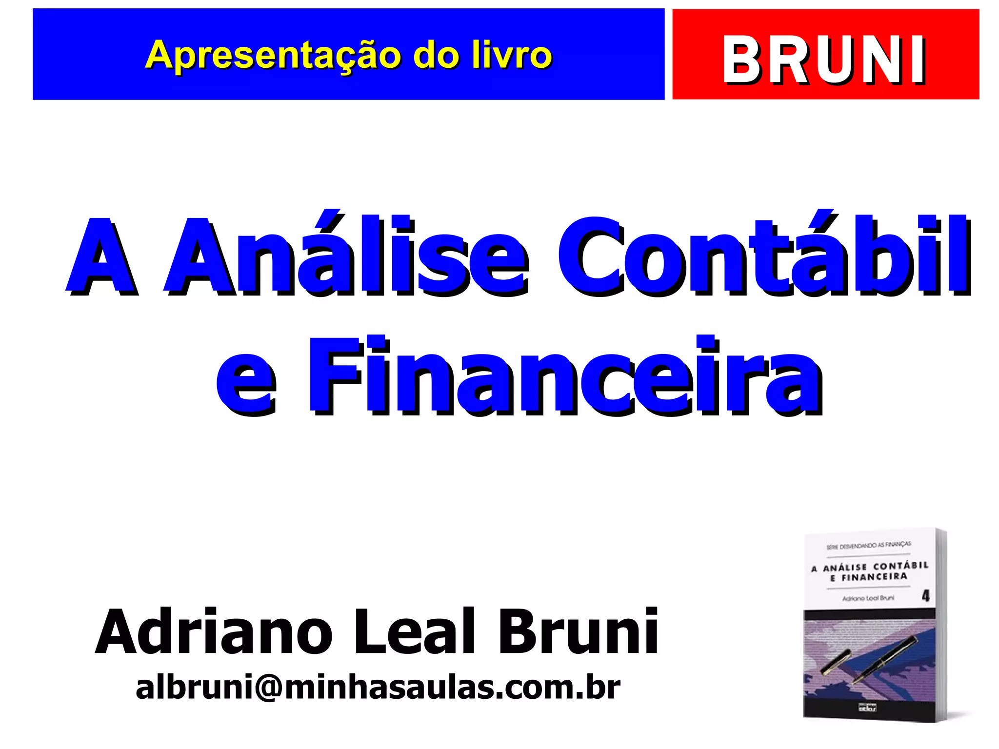 Este documento descreve um livro sobre análise contábil e financeira. O livro apresenta conceitos de forma simples e didática com muitos exemplos e mais de 150 exercícios. Ele também inclui um aplicativo no Excel para análise de demonstrações contábeis com dados reais de empresas brasileiras.