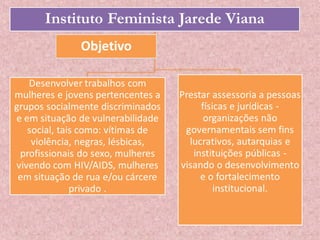 A organização está localizada em Rio Largo, Alagoas e fornece seu endereço, contatos e valores como horizontalidade, transparência e ética. Sua estrutura inclui coordenação executiva e jurídica/financeira.