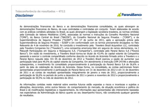 1) A teleconferência de resultados do 4T12 do Banco apresentou os principais números do trimestre, como lucro líquido ajustado 31,6% superior ao trimestre anterior.