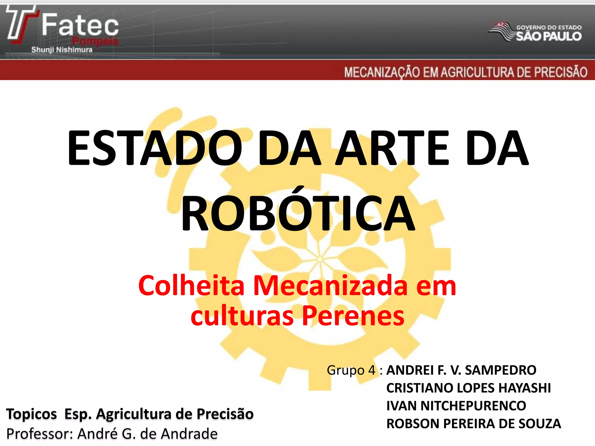 Fonte: Palestra Medição da Superfície Foliar de olivas em veículos autônomo em todo Terreno