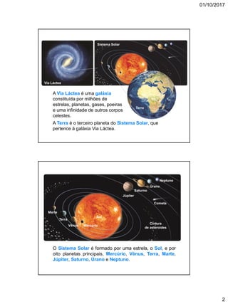 O documento descreve as condições essenciais para a existência de vida na Terra, incluindo a distância certa ao Sol para permitir água líquida, massa suficiente para reter uma atmosfera, e a presença de água e atmosfera. Detalha também a evolução da atmosfera terrestre ao longo do tempo, com o enriquecimento em oxigénio, e explica o papel do efeito de estufa na retenção de calor necessária à vida.
