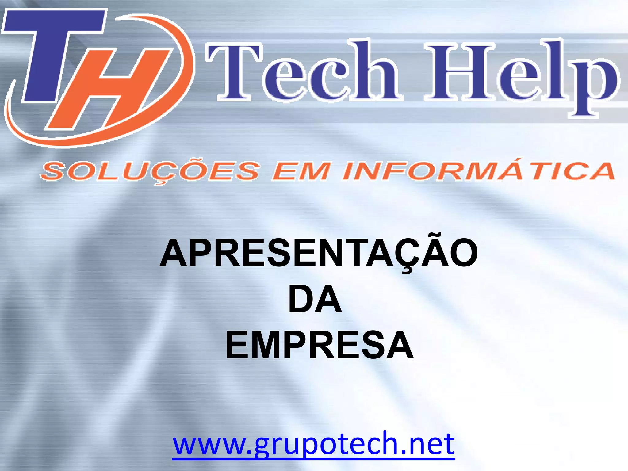 A Tech Help Soluções em Informática é uma empresa de tecnologia fundada em 2009 que oferece serviços como manutenção de computadores, desenvolvimento de sistemas, criação de sites e intranet, treinamentos, venda de peças e terceirização de mão de obra. A empresa cresceu atendendo clientes de pequeno, médio e grande porte nas regiões de São Paulo.