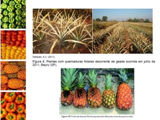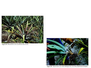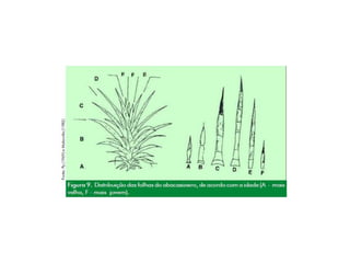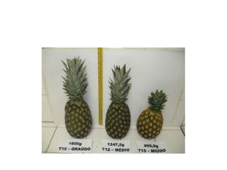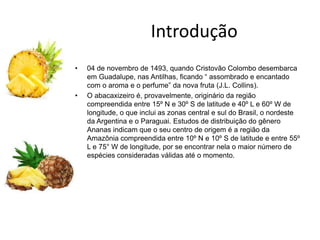 O documento apresenta o abacaxizeiro, descrevendo sua origem, exigências edafoclimáticas, ciclo da cultura, variedades, manejo de mudas, plantio, consorcio, controle de plantas daninhas, irrigação, doenças e pragas. Fornece detalhes técnicos sobre o cultivo comercial dessa fruteira tropical.
