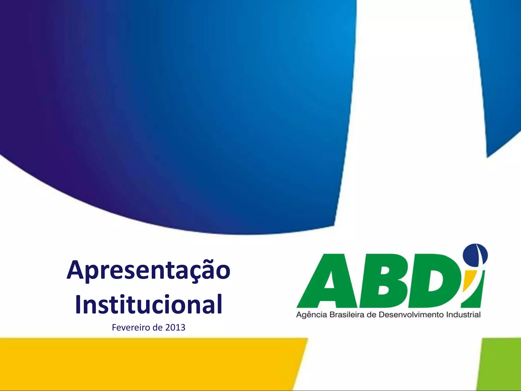 O documento apresenta dados institucionais sobre a Agência Brasileira de Desenvolvimento Industrial (ABDI). Descreve a missão da ABDI de promover a política industrial brasileira através de ações estratégicas para estimular investimentos, emprego, inovação e competitividade. Também discute o planejamento estratégico da ABDI para 2012-2014, que visa posicioná-la como referência em articulação público-privada e inteligência industrial.