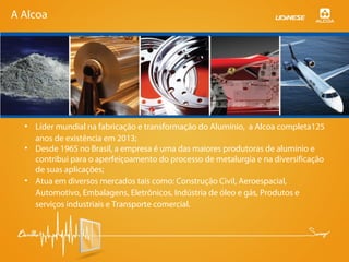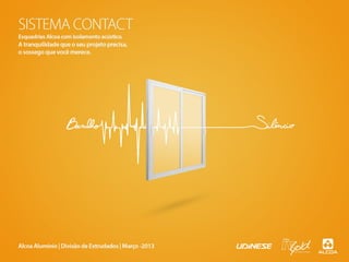 O documento descreve a linha IV Gold de esquadrias da Alcoa, que oferece alto desempenho acústico e de estanqueidade ao usar o Sistema Contact. O sistema permite o fechamento paralelo e perpendicular das folhas, eliminando frestas e isolando bem o som e a água. Testes mostraram alto nível de estanqueidade e redução sonora. Além disso, o design é limpo e discreto, podendo ser usado em diferentes estilos arquitetônicos.