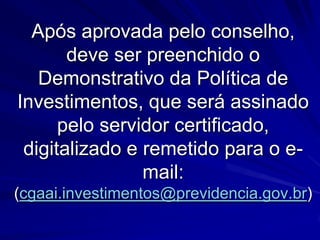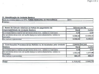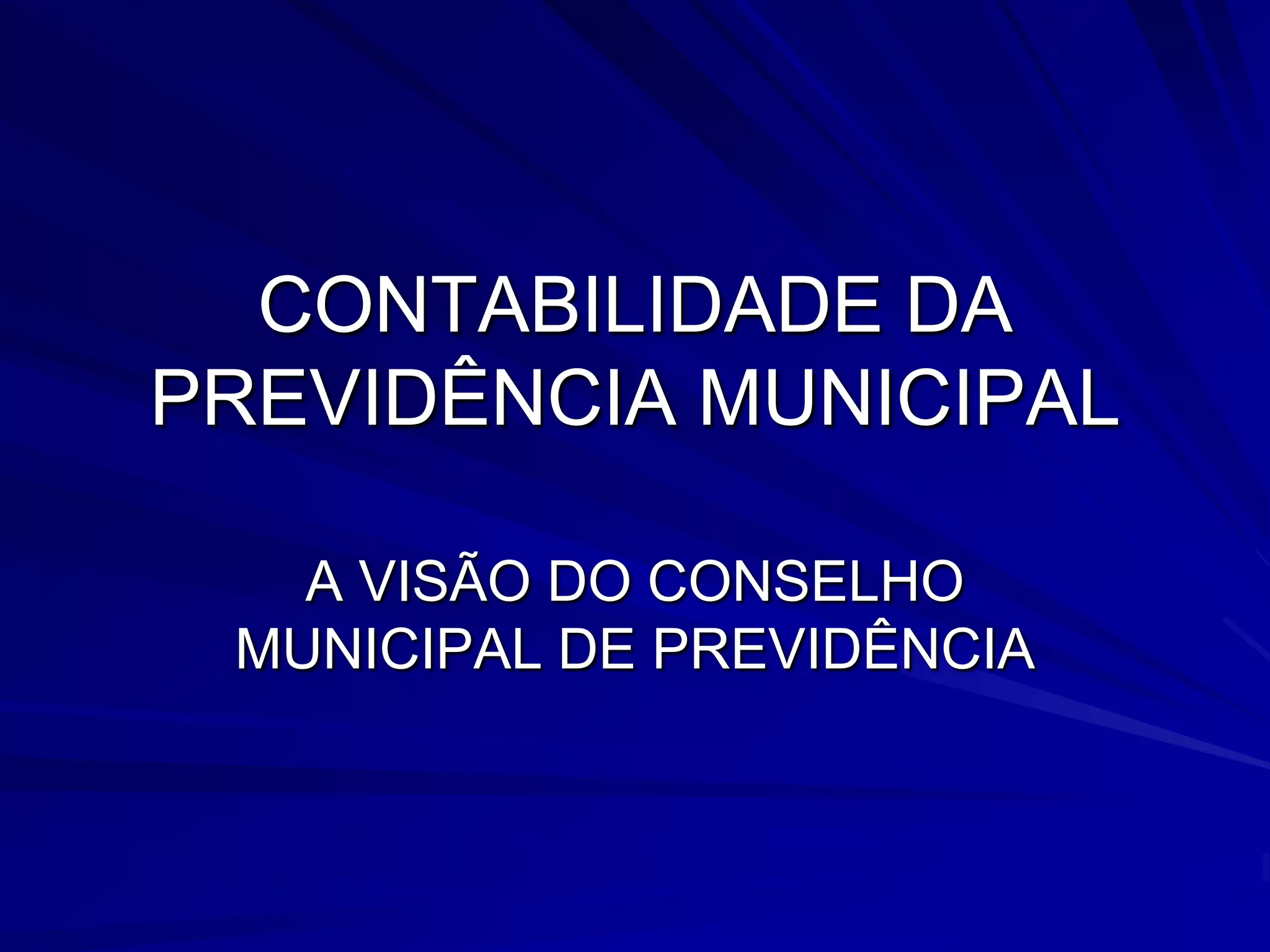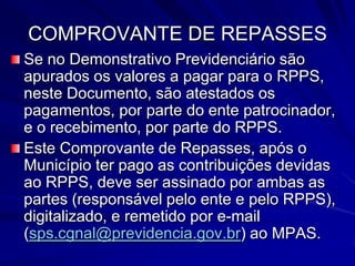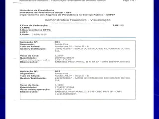 O documento discute a contabilidade aplicada aos Regimes Próprios de Previdência Social (RPPS) municipais. Ele explica os fundamentos da contabilidade pública, as origens dos recursos e despesas do RPPS, e os anexos e demonstrativos exigidos pelo Ministério da Previdência Social para a prestação de contas.