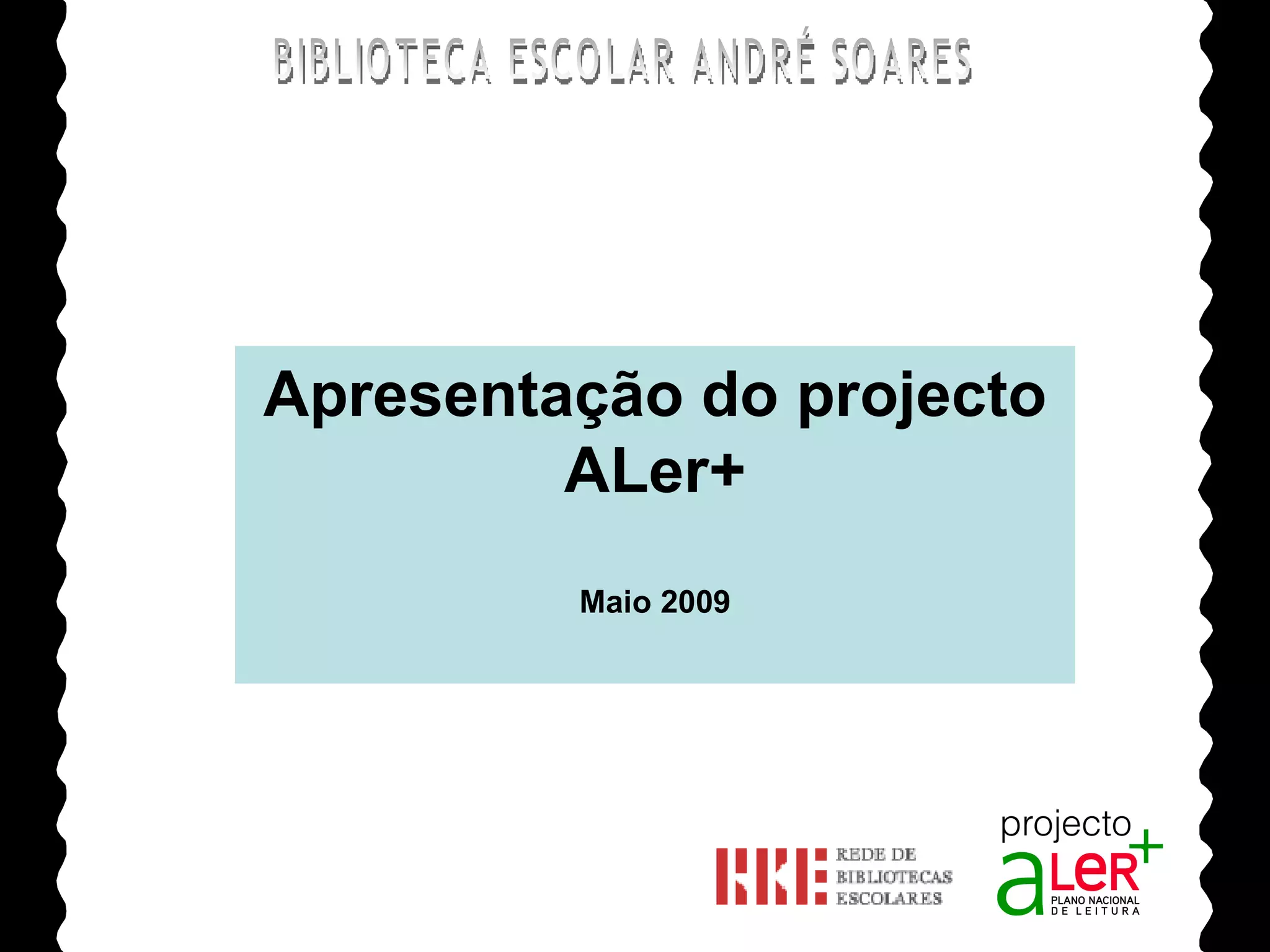 Este documento descreve as atividades realizadas no âmbito do projeto ALer+ na Biblioteca Escolar André Soares com o objetivo de promover a leitura entre alunos, professores, funcionários e membros da comunidade. O projeto incluiu a criação de pontos de leitura, encontros com autores, concursos de leitura, sessões de leitura e atividades para envolver as famílias.