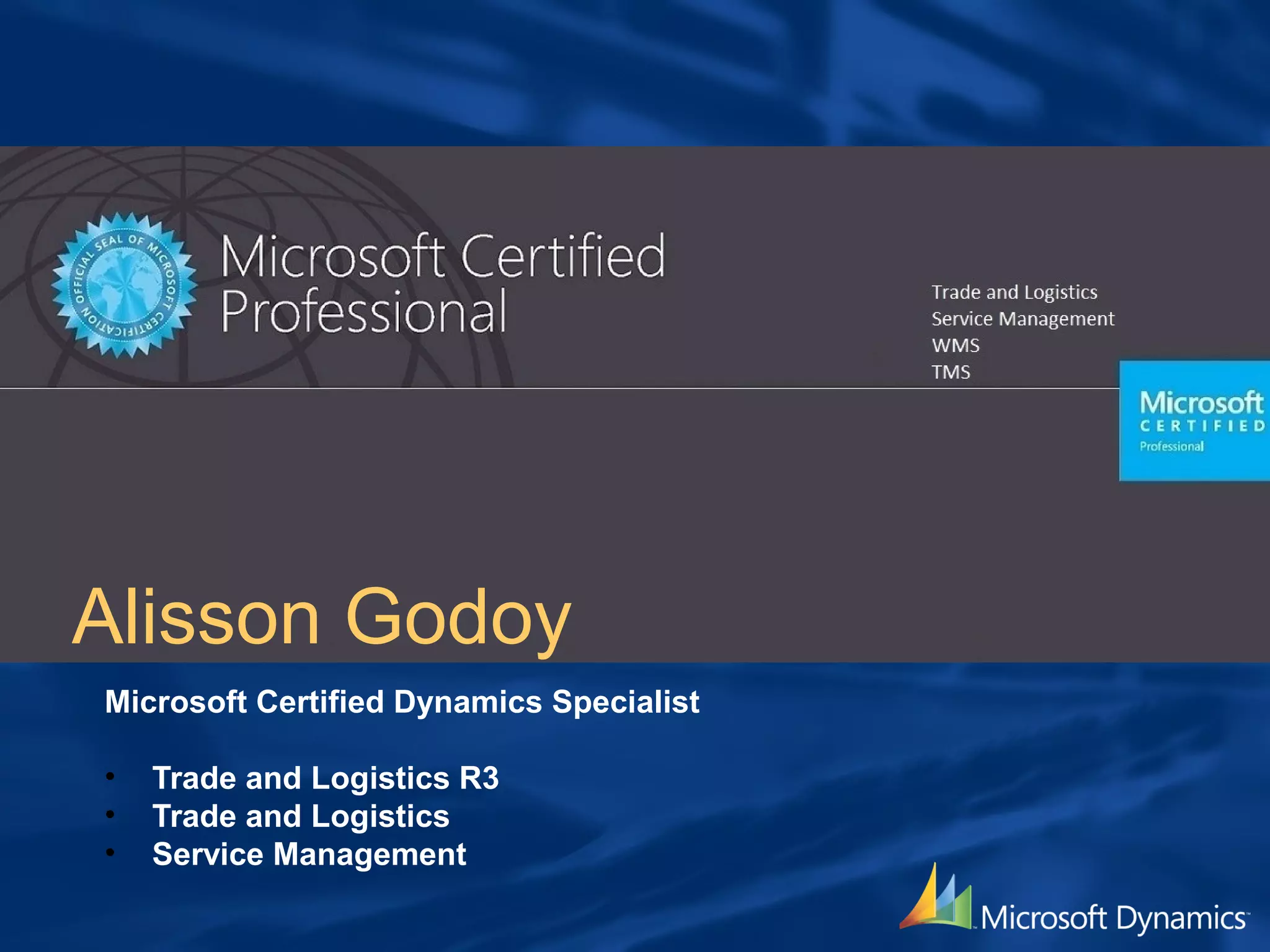 Alisson Godoy é um especialista certificado em Microsoft Dynamics AX 2012 R3, com foco em trade and logistics e service management, possuindo mais de 5 anos de experiência em consultoria. Ele participou de 18 projetos, incluindo implantações e go-lives em várias empresas, e também desenvolveu apresentações comerciais e guias de configuração. Além disso, possui MBA em administração, formação em ciência da computação e habilidades intermediárias em inglês.