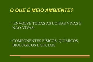 O documento fornece dicas sobre como preservar o meio ambiente, sugerindo fazer passeios de bicicleta, deixar o carro na garagem, plantar um jardim, trocar alimentos industrializados por naturais, não desperdiçar água e usar sacolas reutilizáveis. A mensagem final enfatiza que cada um pode contribuir com ações simples no seu dia a dia.