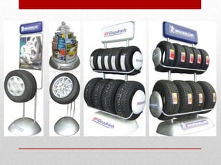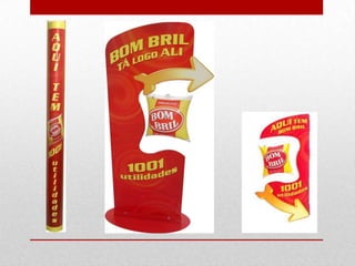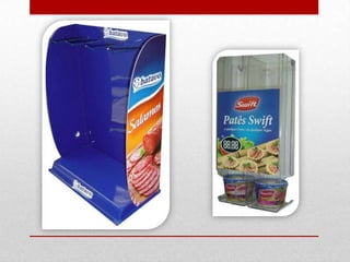 1. O documento lista vários tipos de materiais e equipamentos para exposição de produtos em gôndolas de varejo, incluindo separadores, expositivos, faixas e divisores para várias marcas como Danone, Sadia, Arcor e Perdigão.