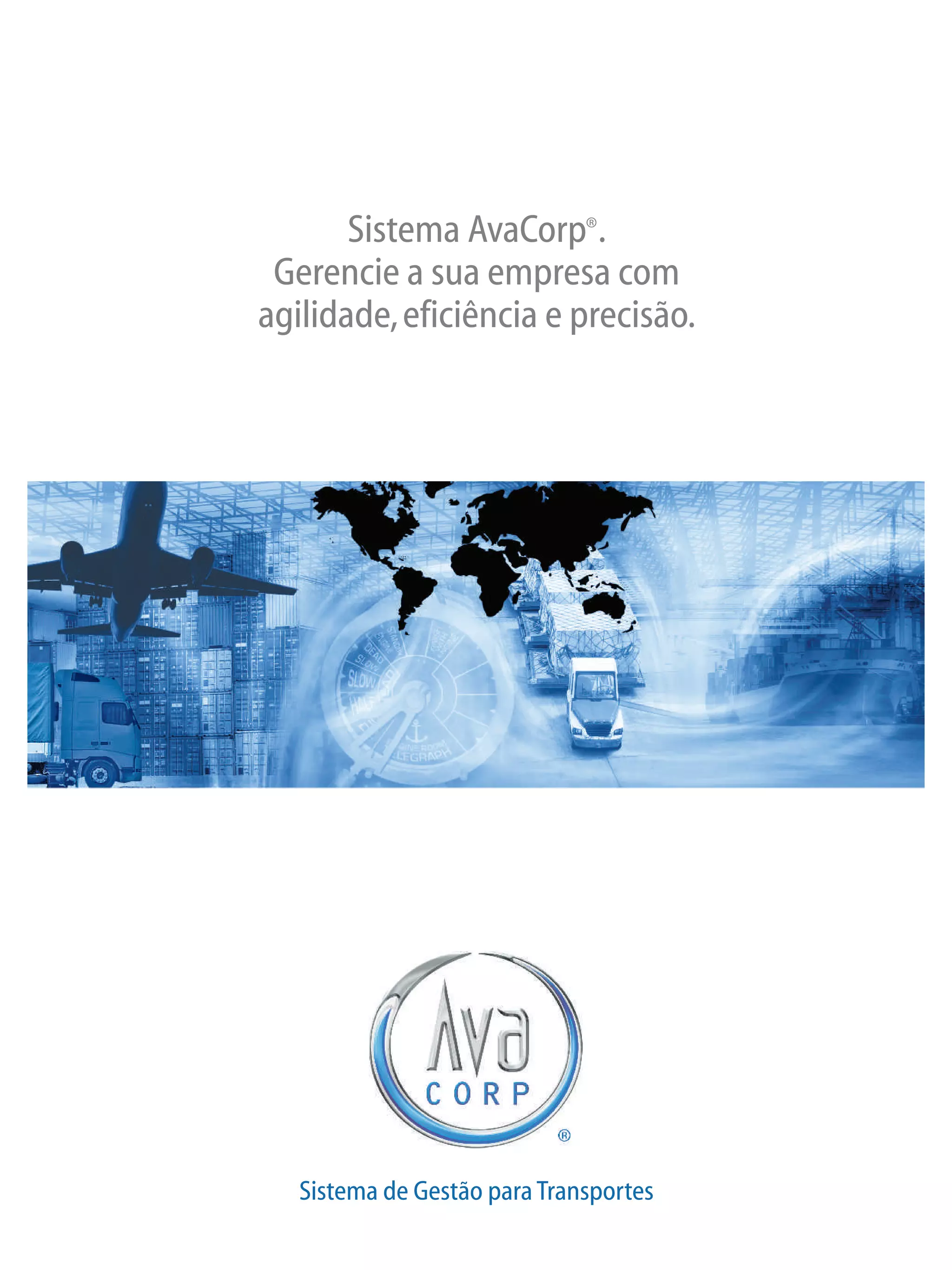 1) O documento descreve o sistema de gestão AvaCorp para transportes, que oferece módulos integrados para gestão de operações, finanças, frota e armazém.