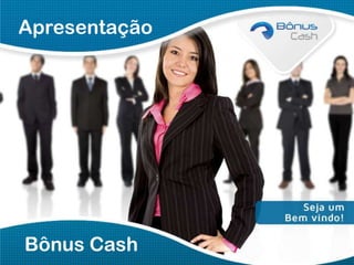 O documento apresenta um sistema de fidelização de clientes chamado Bônus Cash que oferece cashback em compras em lojas parceiras. O sistema funciona através de um cartão pré-pago ou aplicativo que gera ganhos sobre compras próprias e indicações. Há 11 formas de ganhos incluindo sobre compras, rede binária, profundidade e recargas de celular.