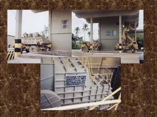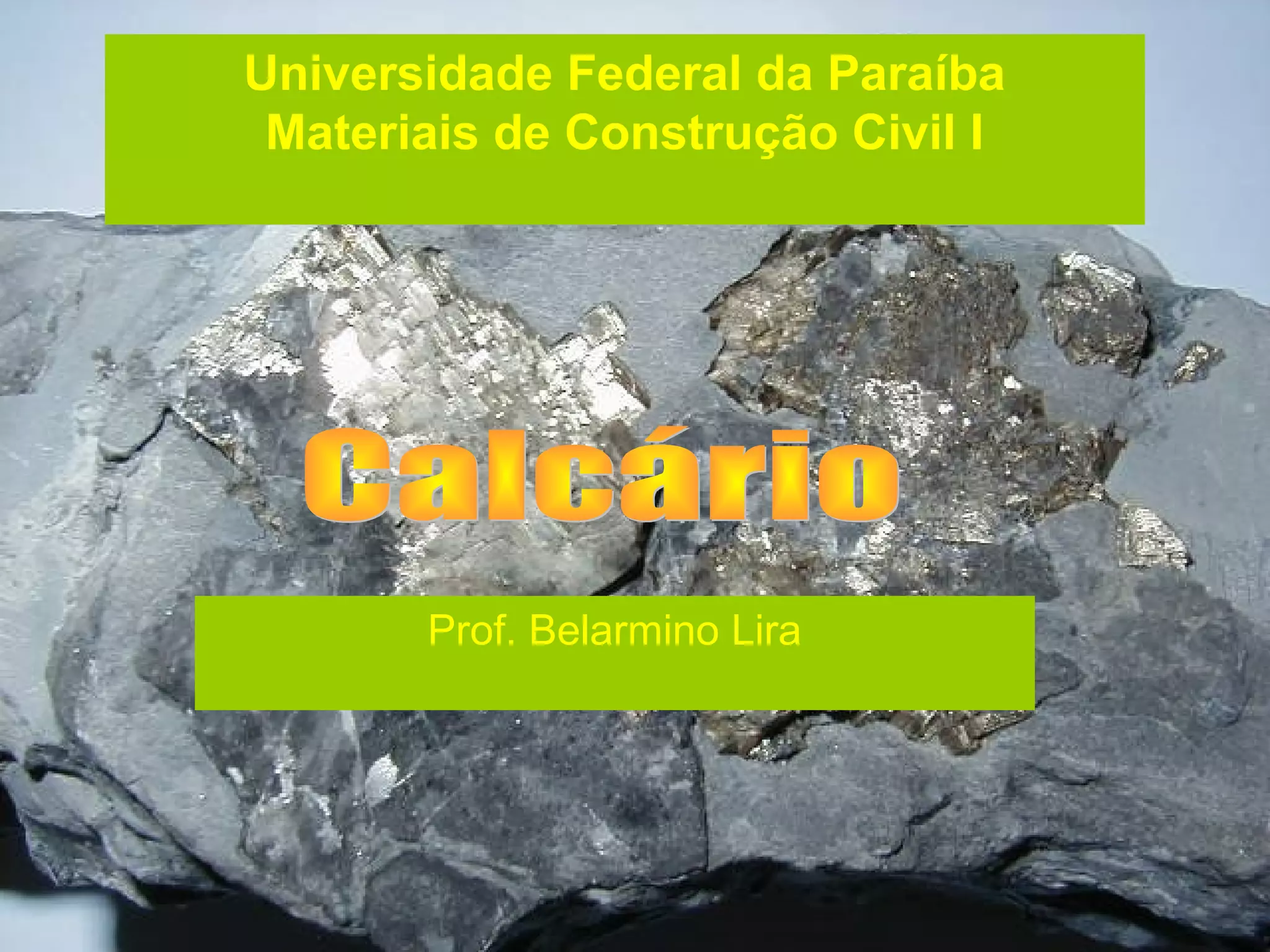 O documento discute calcários, rochas sedimentares compostas principalmente de carbonato de cálcio. Detalha sua formação, composição, usos e aplicações em indústrias como cimento, cal e agricultura. Também aborda a classificação, propriedades e benefícios do calcário ao solo.