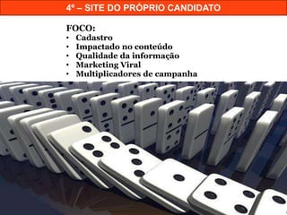O documento discute como os eleitores escolhem seus candidatos online e como as campanhas políticas podem se engajar com eleitores nas redes. Ele descreve como os eleitores obtêm notícias online, usam redes sociais e visitam sites de candidatos, e como as campanhas podem se engajar nesses espaços para influenciar os eleitores.