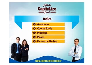 A Capitalize Brasil é uma empresa que oferece oportunidades de afiliação para crescimento financeiro através de cursos online e um sistema de divisão de lucro. Seus afiliados podem ganhar comissões significativas ao divulgar cursos e produtos, além de receber bônus por indicações diretas e cumprimento de metas. O programa visa beneficiar tanto o afiliado quanto a empresa, promovendo um crescimento sustentável no mercado.