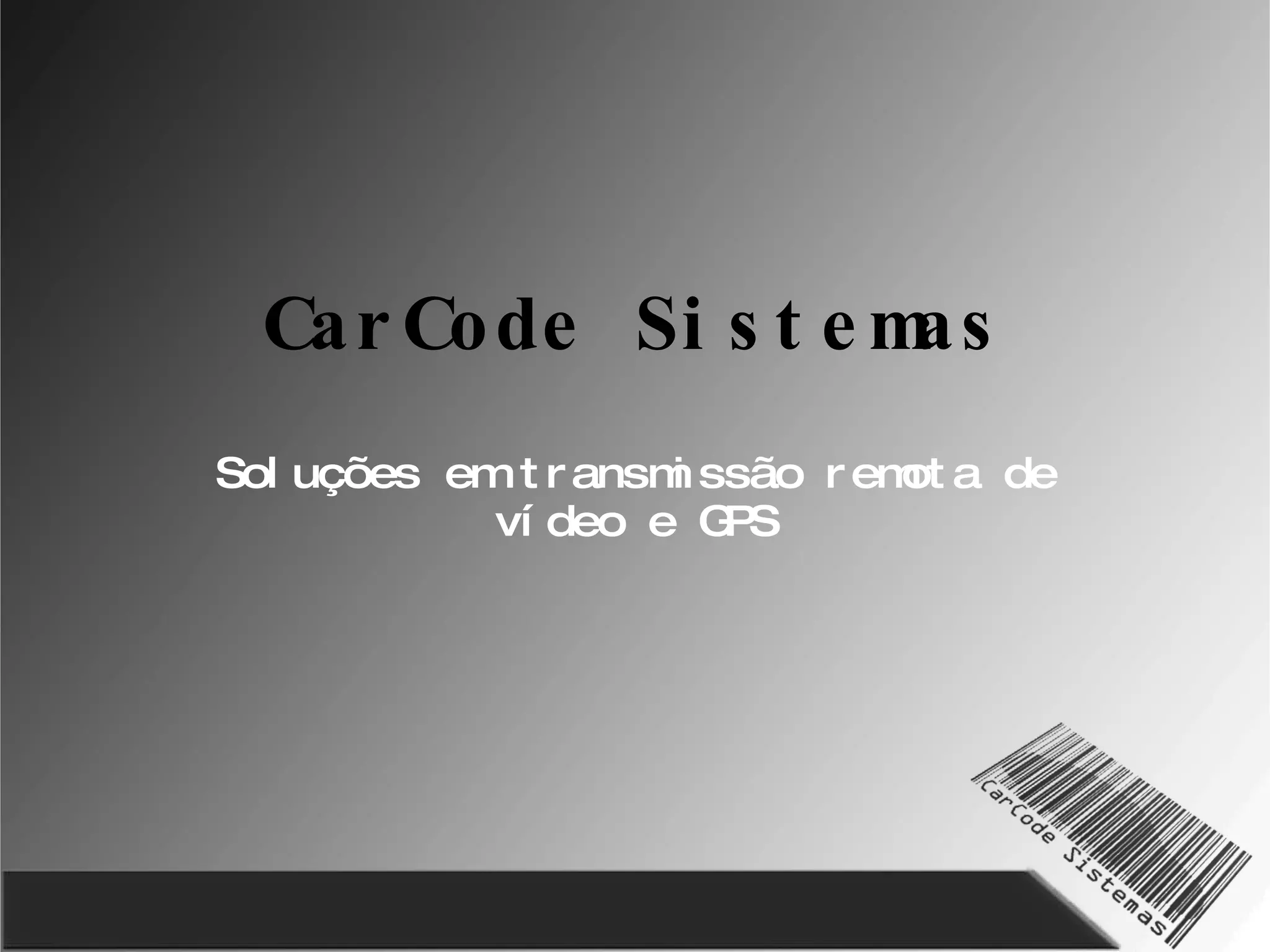 A CarCode Sistemas oferece soluções de transmissão remota de vídeo e localização GPS para monitoramento em veículos, vias públicas, locais remotos e operações, de forma confiável e segura. Os equipamentos transmitem vídeo ao vivo independentemente da localização e podem gravar vídeos localmente em caso de falta de sinal. As soluções aumentam a segurança, controle e eficiência em aplicações como monitoramento de trânsito, transporte e locais públicos.