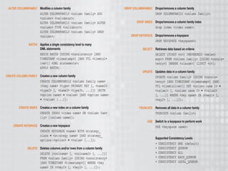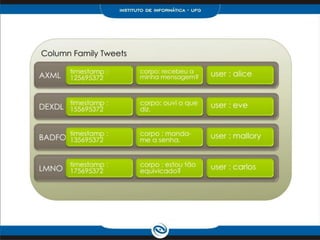 O documento discute o modelo de dados do Cassandra, incluindo: