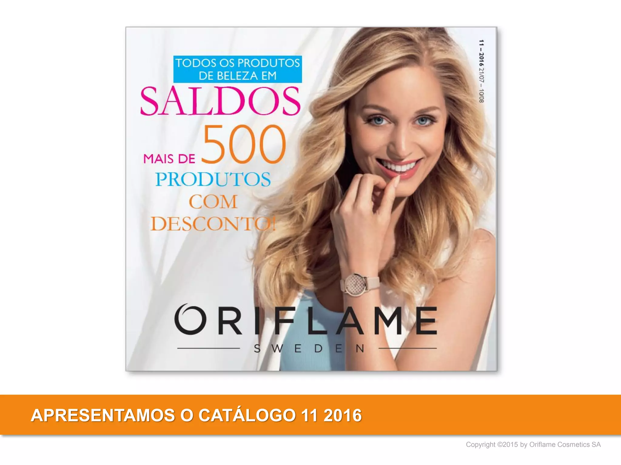 [1] O documento é um catálogo de produtos da Oriflame que apresenta novidades, promoções e descontos em itens de beleza e cuidados pessoais.