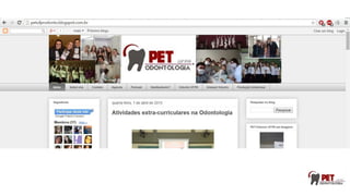 O PET de Odontologia da UFPR iniciou em 2009 com 12 bolsistas selecionados anualmente através de processo seletivo. As etapas incluem inscrição, redação, dinâmica em grupo, apresentação de projeto individual e entrevista. O grupo realiza atividades acadêmicas e de extensão para despertar o interesse dos calouros e divulga-se nas mídias sociais.