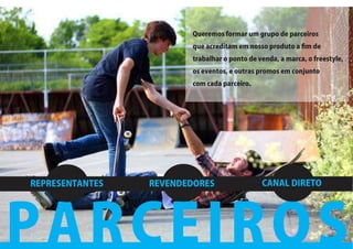 Uma empresa de skates convida o leitor a agendar uma visita à sua loja ou conversar sobre negócios, fornecendo detalhes de contato por telefone, endereço e sites. A empresa promete uma boa recepção ao universo dos skates para surfar.