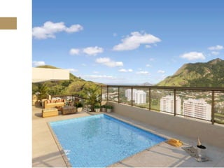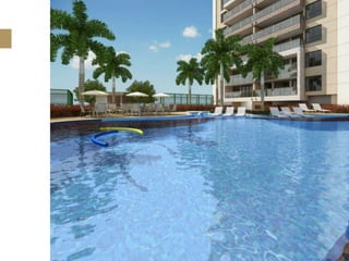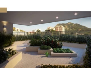 O documento descreve um empreendimento imobiliário localizado no bairro do Recreio dos Bandeirantes no Rio de Janeiro. O empreendimento oferece 360 unidades residenciais de 3 quartos com suíte, além de diversas áreas de lazer e comodidades. O local permite viver perto da praia e da natureza, com fácil acesso a transporte e serviços.
