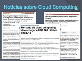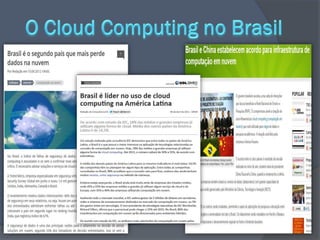 O documento discute a história e o desenvolvimento da computação em nuvem, desde as primeiras ideias na década de 1960 até os serviços populares de hoje. Aborda conceitos como armazenamento na nuvem, cloud computing, nuvens públicas e privadas, e categorias de serviços como SaaS, PaaS e IaaS. Também discute vantagens e desvantagens da computação em nuvem.