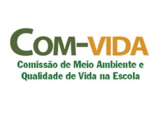 O documento descreve a origem e objetivos da Com-VIDA, uma comissão criada por estudantes durante uma conferência ambiental em 2003 para promover a participação de jovens em questões ambientais e comunitárias. A Com-VIDA trabalha com a Agenda 21 na Escola para desenvolver projetos coletivos que melhorem a sustentabilidade da escola e da comunidade.