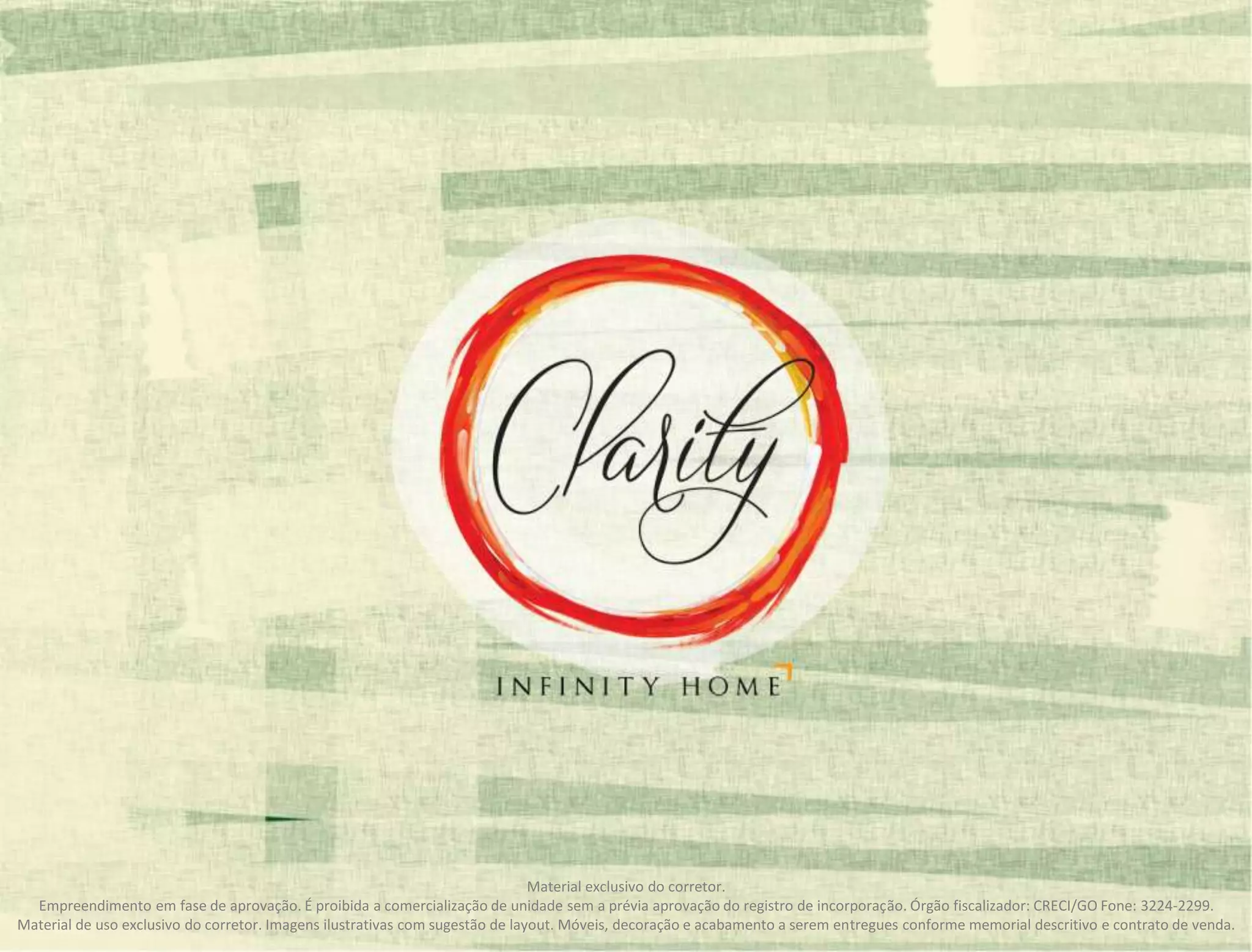 O documento destaca que o material é exclusivo para corretores e que o empreendimento está em fase de aprovação, sendo proibida a venda de unidades sem registro. Informa também que as imagens são ilustrativas e itens como móveis e acabamento serão entregues de acordo com o contrato.
