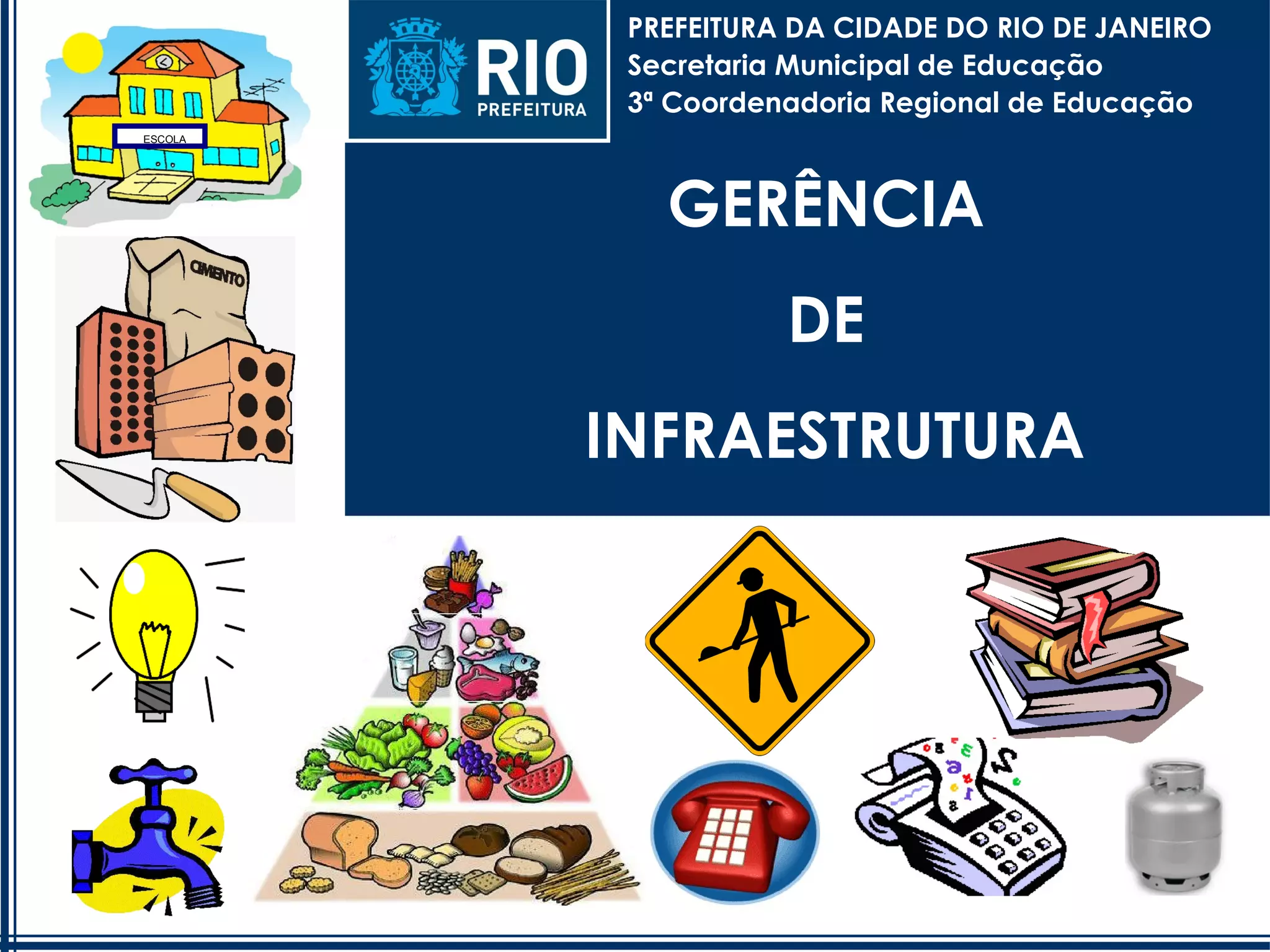 O documento descreve as responsabilidades e procedimentos da Gerência de Infraestrutura da 3a Coordenadoria Regional de Educação no que se refere à manutenção de escolas, materiais, equipamentos e programa de alimentação escolar, incluindo a realização de pedidos de merenda.