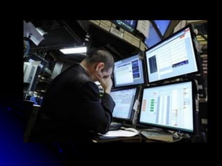 O documento resume a crise financeira mundial iniciada nos Estados Unidos em 2007 devido à falta de liquidez no mercado imobiliário de hipotecas de alto risco. Isso desencadeou uma crise de crédito global que levou ao desemprego em massa e à falência de grandes bancos. Os dados mostram os impactos econômicos severos em todo o mundo, como a queda acentuada nos preços das casas e ações nos EUA e aumento da pobreza.