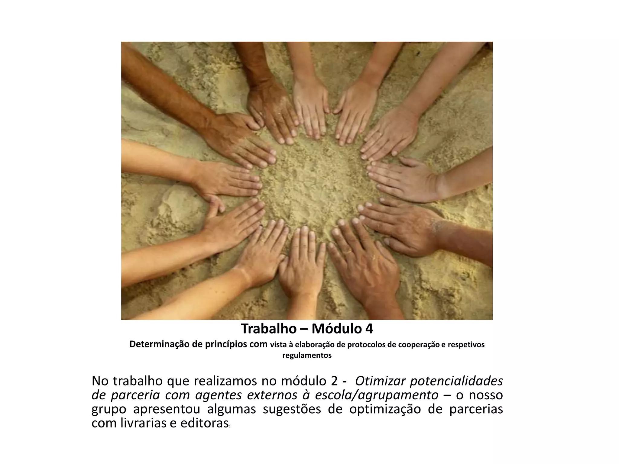 Este documento descreve uma entrevista com uma livraria local para discutir possíveis parcerias entre a livraria e escolas. A livraria fornece uma lista anual de autores disponíveis para visitas, oferece descontos de 10-15% para escolas, e apoia a promoção da leitura através de oficinas, hora do conto, e exposições. Ambas as partes concordam que uma melhor comunicação é necessária para desenvolver futuras parcerias.