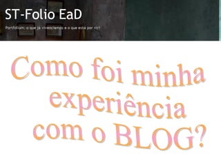 O documento discute a experiência de alunos com blogs em um curso a distância. Três pontos principais: 1) Desafios iniciais com novas ferramentas tecnológicas. 2) Crescimento pessoal e profissional por meio da troca de informações e divulgação de trabalhos. 3) Oportunidade para professores se manterem atualizados com as tecnologias e promover aprendizagem contínua.