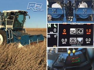 O documento descreve o sistema de colheita com duplo rotor da colheitadeira New Holland CR 5080, que proporciona excelente debulha e separação dos grãos através da fricção suave dos dois rotores e côncavos de grandes dimensões. Também menciona brevemente um novo kit de pesagem lançado pela Almaco Brasil para pesquisa de grãos em colheitadeiras, a um preço mais acessível do que transformar uma CR5080.